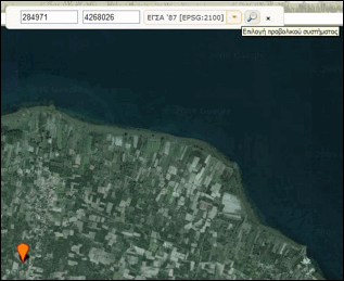 και Υ (με δυνατότητα επιλογής προβολικού συστήματος). Το σημείο που αντιστοιχεί