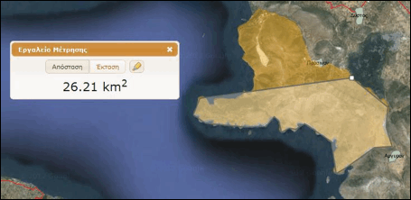 Για τη μέτρηση έκτασης ο επισκέπτης ξεκινά κάνοντας αριστερό «κλικ» σε ένα