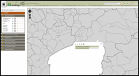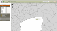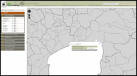 Ενεργοποιώντας και τα 5 επιμέρους επίπεδα και εστιάζοντας στην περιοχή ενδιαφέροντος και επιλέγοντάς την με αριστερό κλικ, ανοίγει ο πίνακας περιγραφικών πληροφοριών. Αριθμημένες καρτέλες του πίνακα δίνουν στον επισκέπτη τις διοικητικές πληροφορίες που αναζητά διαδοχικά από τη μικρότερη στη μεγαλύτερη διοικητική μονάδα, όπως φαίνεται στις παρακάτω εικόνες.